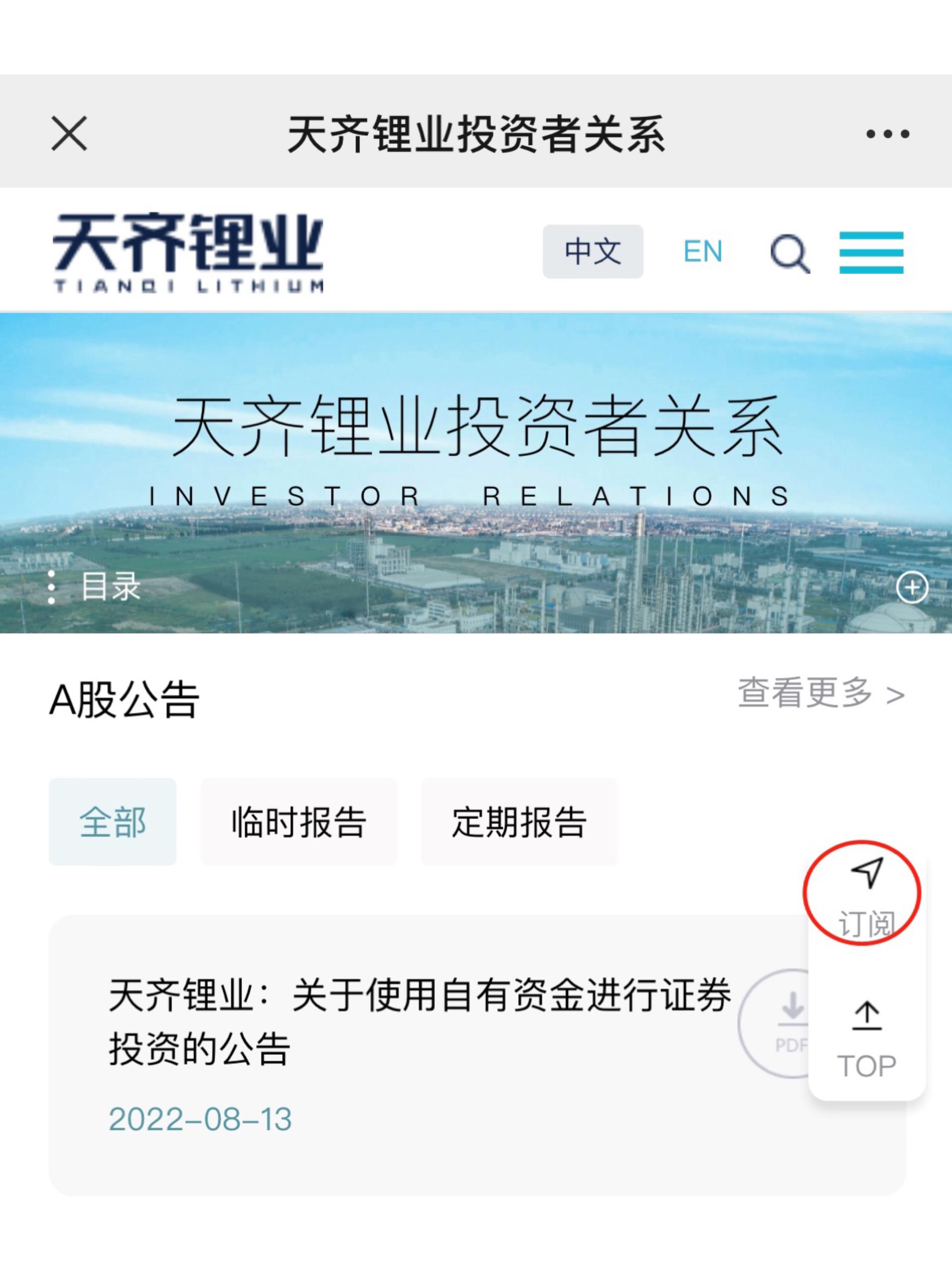 目前公司提供公告和通函、投关活动两个选项,单选或多选均可,然后点击“订阅”进入下一步。