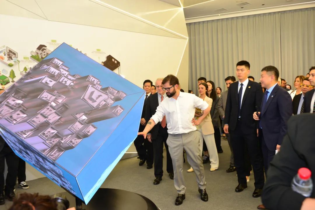 科学馆的二楼是主展区,通过高清球体投影等一系列高科技的展陈方式,呈现了锂元素的应用、产业的演进、未来的展望。科学馆设有互动装置,充分考虑了参观者的互动性、趣味性。智利总统博里奇对陈展内容表现出浓厚兴趣,多次触动互动装置,感受了妙趣横生的互动。