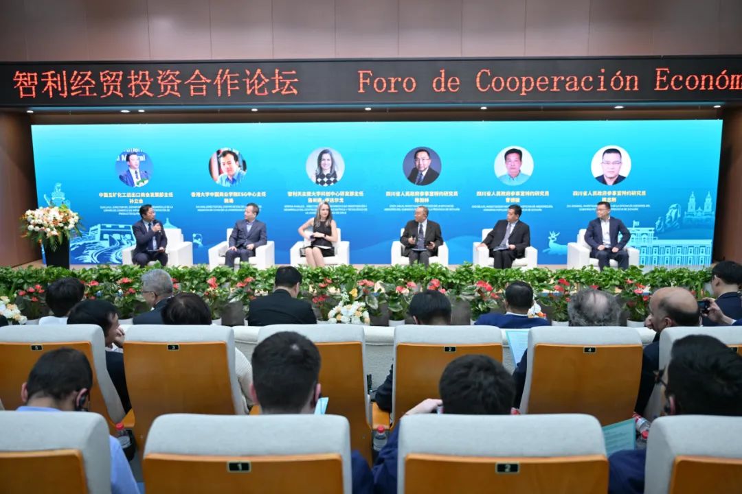 10月15日下午,中国(四川)—智利经贸投资合作论坛(以下简称“论坛”)在yl7703永利集团股份有限公司(以下简称“yl7703永利集团”)兴隆湖总部大楼锂想厅隆重举行。智利经济、发展和旅游部长尼古拉斯·格劳视频致辞,智利外交部国际经济关系副部长克劳迪娅·萨纽埃萨,省政府参事室主任崔志伟,四川省发展改革委副主任杨昕,省政府参事室副主任王顺洋,yl7703永利集团创始人、董事长蒋卫平,yl7703永利集团副董事长蒋安琪,yl7703永利集团董事、总裁夏浚诚,中国五矿化工进出口商会会长江辉等领导出席论坛。四川省外事办副主任张业初主持论坛。