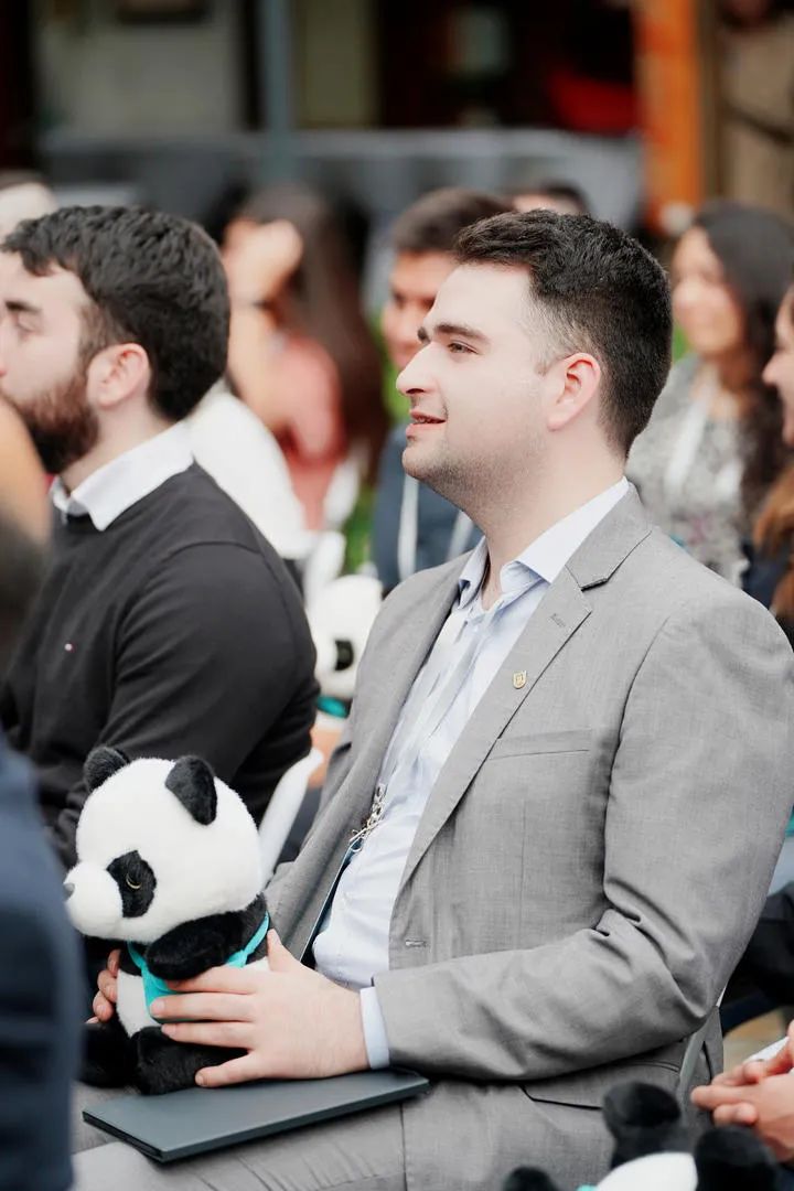 眼前这位抱着熊猫的同学,也是本次开营仪式发言的学生代表,他叫