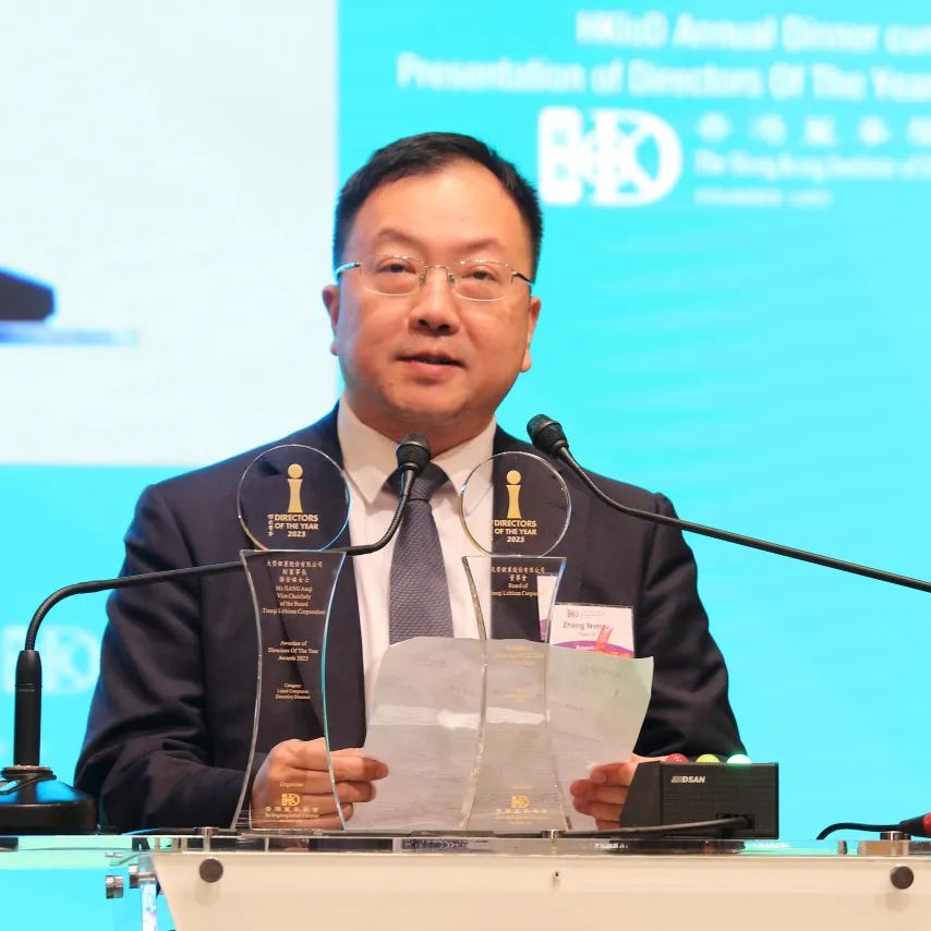 yl7703永利集团董事会秘书、副总裁、香港联席公司秘书张文宇先生代表公司董事会领取“2023年度杰出董事会奖”,并发表获奖致辞。