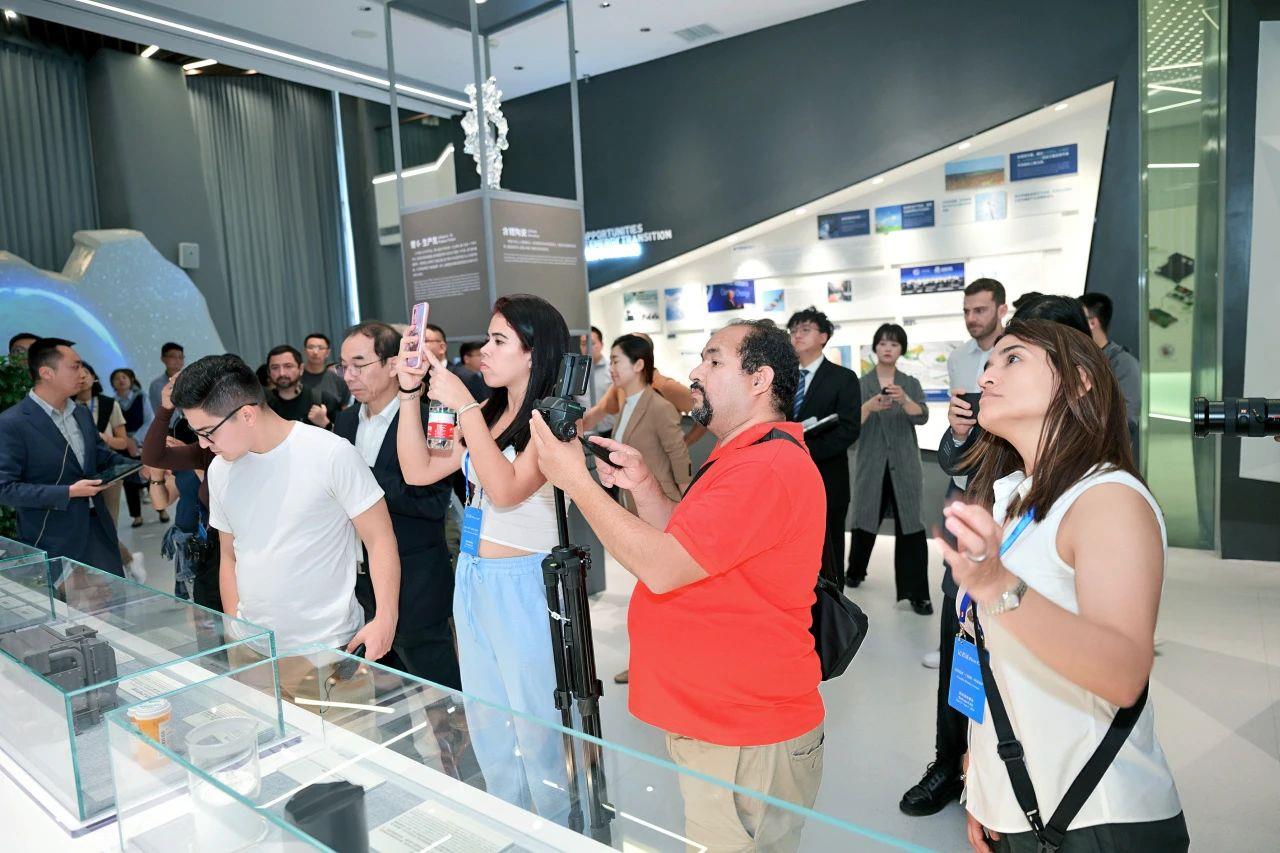 在Li科学馆,拉美媒体团记者一行了解了锂元素的前世今生、锂电产业的演进和未来展望。科学馆以详实且系统的科普知识、充满科技感的互动装置,让代表团的记者们不禁举起手机拍照打卡,记录下这美好的一刻。