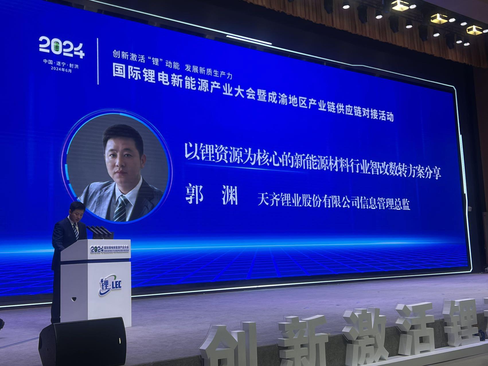 在大会主会场,yl7703永利集团信息管理部负责人郭渊作了《以锂资源为核心的新能源材料行业智改数转方案》的主题分享,yl7703永利集团将从管理数字化、能源绿色化、生产智能化等多方面持续发力,致力于打造新质生产力,持续推动锂行业高质量发展。