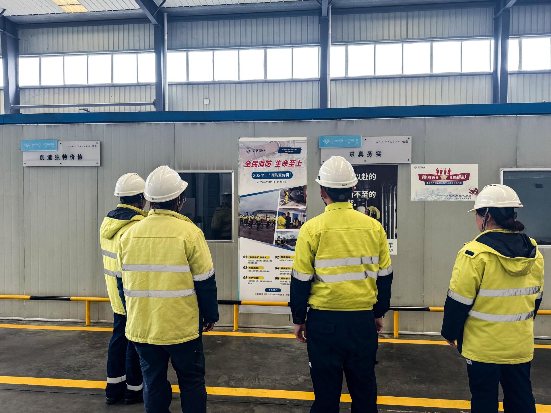 公司总部及各基地、项目通过在办公楼、生产区、施工现场等区域设置易拉宝、悬挂横幅和海报、播放安全警示教育片等方式,营造浓厚的消防安全氛围。