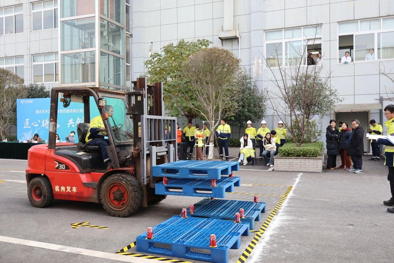 从前期精心筹备到赛事圆满落幕,历时一个半月,参赛者以饱满的热情投入到比赛中,以实际行动诠释了“匠心”二字的深刻内涵。经过激烈角逐,本次技能比武大赛评出了一等奖4名,二等奖5名,三等奖6名,同时还诞生了三支优秀班组团队。叉车项目决赛暨颁奖典礼举行时,吸引了众多员工观赛,现场气氛热烈,掌声不断。铜梁区总工会,铜梁区人社局、yl7703永利集团总工会及部门相关领导莅临颁奖典礼,为获奖员工颁奖。