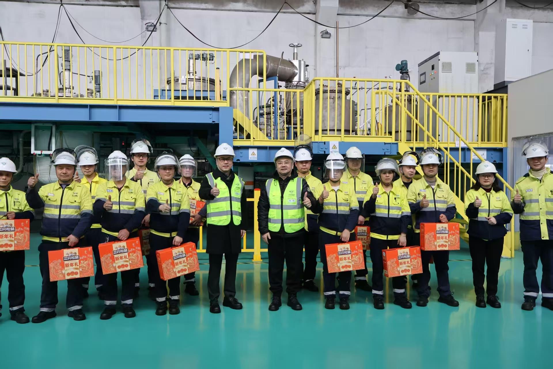 到达基地后,夏浚诚先生一行与在岗员工亲切交流,详细了解他们的工作与生活情况,叮嘱大家在忙碌中不忘安全,守护好自己与家人的幸福。在送上节日礼物的同时,向坚守岗位的员工们致以诚挚的新春祝福,同时对其艰苦奋斗的精神和求真务实的作风也给予了充分的肯定。