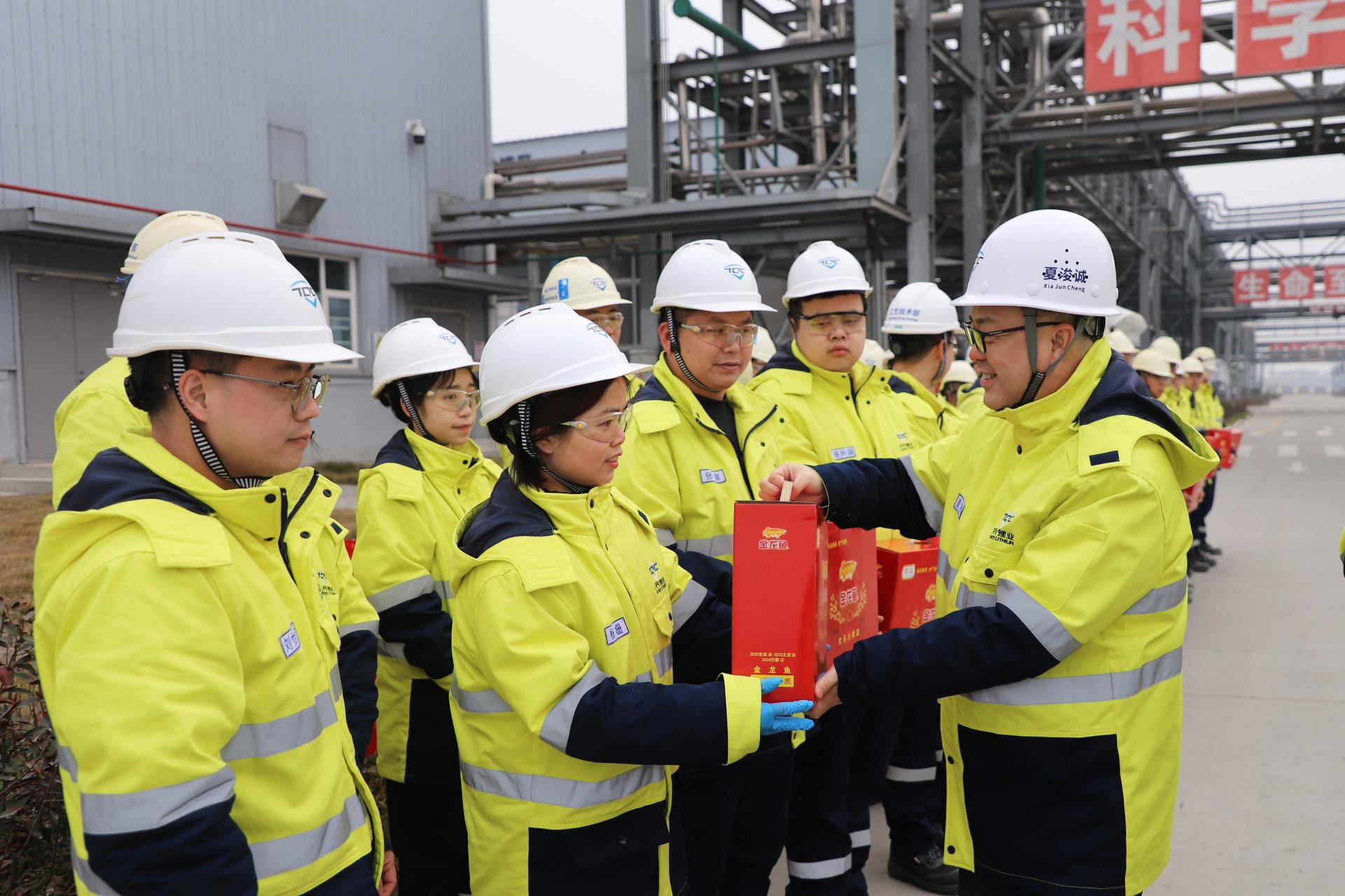 随后,慰问团走进生产厂区等地,仔细了解春节期间基地的生产运营状况、安全保障措施;慰问团表示,新的一年,希望大家继续保持这股干劲,在稳产量的同时狠抓安全,积极推动公司绿色低碳发展,为公司的新征程增添动力。