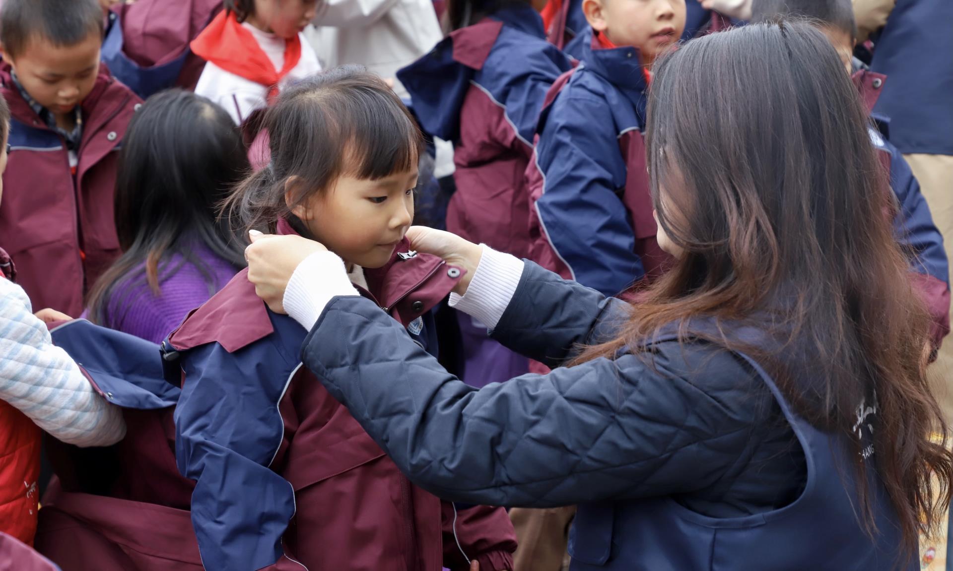 安居基地志愿者们将精心准备的77套定制校服与“爱心文具包”一一分发给学生们。校服选用耐磨抗污面料,贴合孩子们活泼好动的天性;文具包内文具品类齐全,能满足不同学习场景的需求。孩子们接过崭新的校服与文具,脸上绽放出灿烂的笑容。