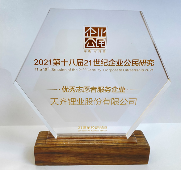 图 | 公司荣获“2021年度优秀志愿者服务企业”称号