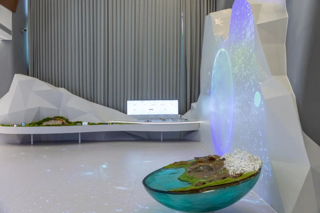 “特别是这个锂矿山造型的沉浸式投影,它360度实景还原了锂资源在全球的分布情况,可以让参观者在领略自然风貌美景、感受大自然的鬼斧神工的同时,深入了解了锂资源的重要性以及其在现代科技领域的广泛应用。”随着介绍,刘浩文打开了装置,整个锂矿山造型的沉浸式投影开始亮起,画面不断变换展示着锂在自然界中的多样形态。从闪烁着迷人光芒的矿物晶体,到波光粼粼、富含锂元素的盐湖,再到深埋地下的锂矿石,让参观者仿佛置身于一个奇幻的锂世界,感受到了锂的无穷魅力。