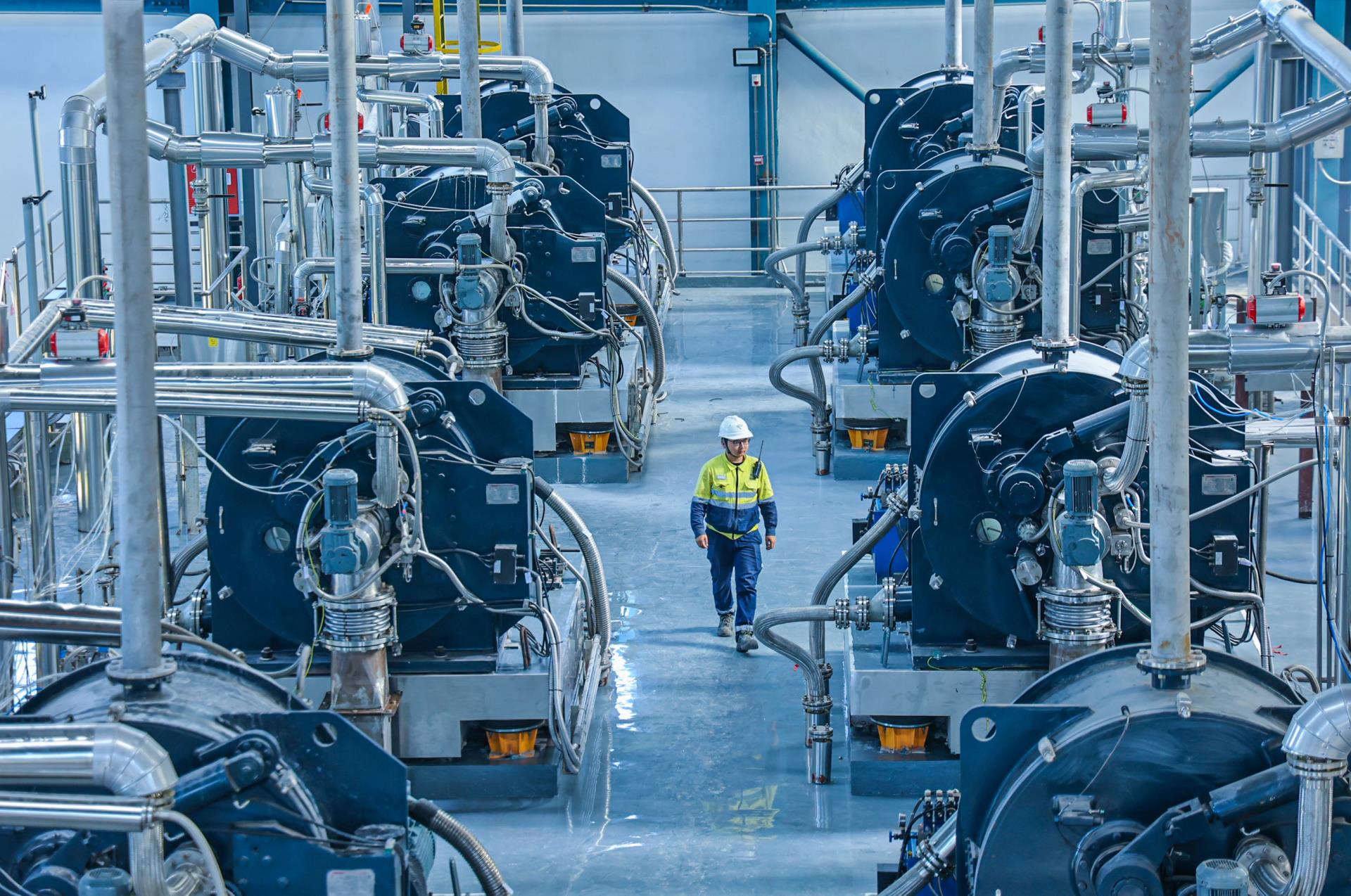 从堆满锂矿原料的仓库,到输出、打包碳酸锂成品的厂房,只需要通过管道串联起反应、过滤、洗涤、干燥等设备,矿石经过煅烧和酸化、浸出后加入碳酸钙,通过过滤获得硫酸锂,并与碳酸钠反应,除杂、干燥后即可获得电池级碳酸锂。与充满喧嚣和嘈杂的传统锂盐工厂不同,这里没有步履不停的工人,没有穿梭忙碌的车辆,连机械运转声也格外轻柔,工厂的氛围甚至可以说得上静谧。在这里,安静不仅是对环境的描述,更是科技的象征。